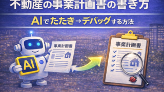 不動産会社の経営 不動産の事業計画書の書き方|AIで下書き→デバッグする方法 不動産会社の創業計画書の書き方を全8項目で解説。日本政策金融公庫の融資審査に通るための売上根拠の作り方、AIに厳しい融資担当者を演じさせる「デバッグ」テクニック、コピペOKプロンプト4種付き。 2026.02.09 不動産会社の経営